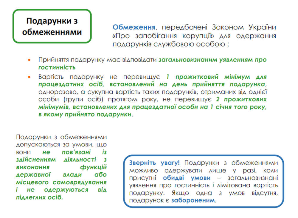 - База знань НАЗК: Обмеження щодо одержання подарунків